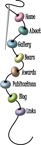 Red Wild Silk Bag I made this bag using scraps of silk and velvet for a log cabin patchwork, and then bead embroidered over it. The embroidery includes a dyed abalone cabochon, and the whole piece was mounted on a bag of Indian red wild silk. The strap was woven from a variety of fibres including velvet ribbon and gold braid. |