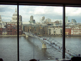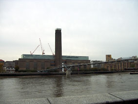 Following that we took a walk a little further down the river to visit Tate Modern. Ok, so I didn’t like everything in there, but there are some fantastic works of art to see. We spent several hours there, and barely made a dent in the exhibitions so I think I’m going to have to go back sometime. The shop was fantastic, but I restrained myself and only came out with a book on Chagall instead of the 15-20 books and prints I wanted. The building is impressive – huge and slightly scary with an amazing entry hall, and with viewing decks on the third floor with a view over the Millenium Bridge and across the river.
